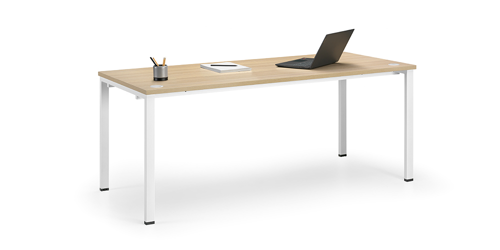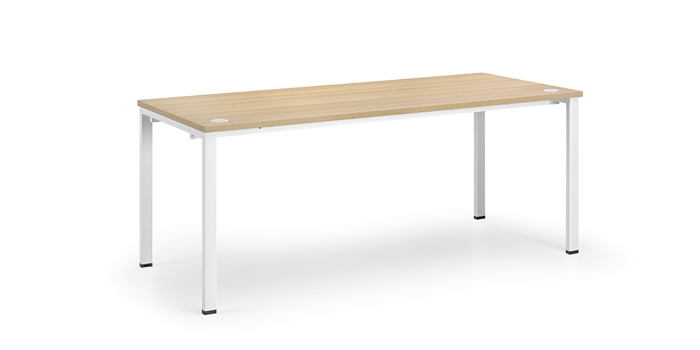 Υπαλληλικό γραφείο VECTOR με επιφάνεια μελαμίνης 25mm και μεταλλικά πόδια. Η επιφάνεια περιλαμβάνει 2 ροζέτες και διατίθεται σε τρεις διαστάσεις και δύο χρώματα, λευκό και δρυς.